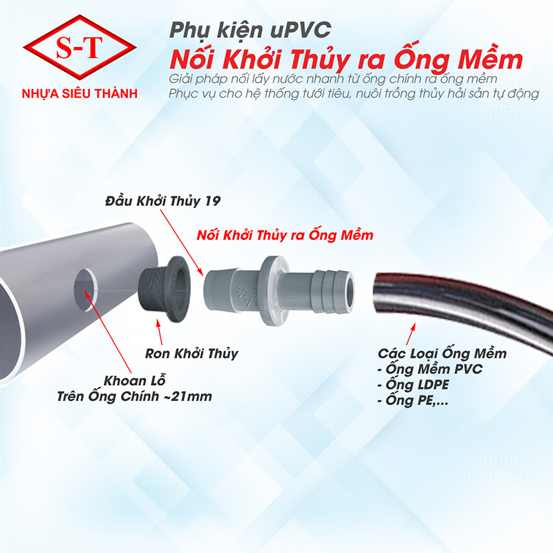 - Nối Khởi Thủy ra Ống Mềm uPVC nhẹ, bền, dễ sử dụng và hiệu quả về chi phí.