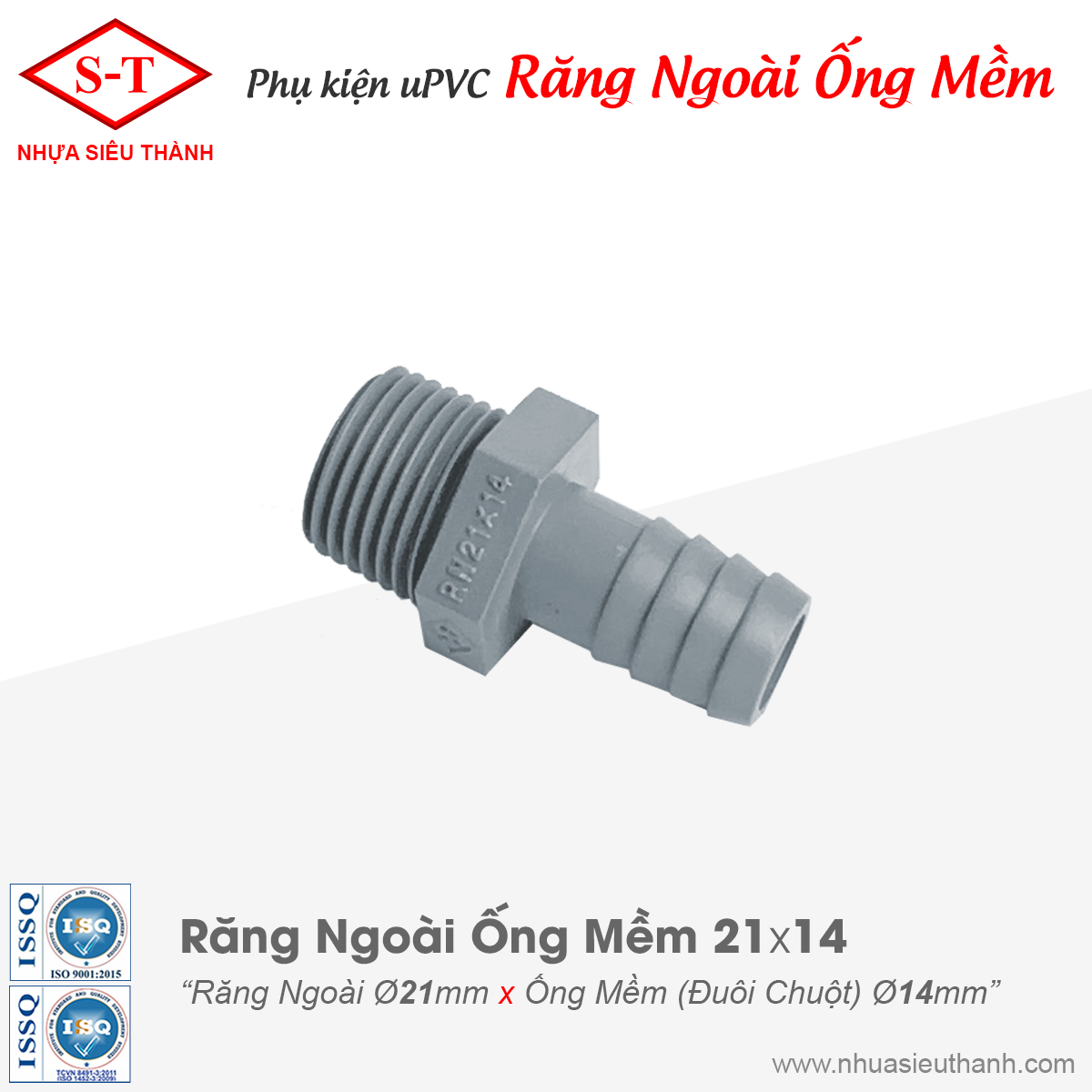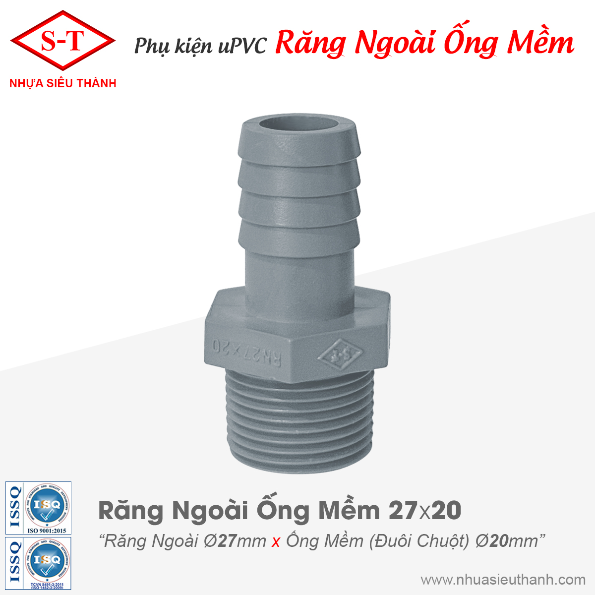- Răng Ngoài Ống Mềm dùng để nối ống mềm cấp nước ra vòi phun với 1 đầu bằng răng để gắn 1 số phụ kiện tích hợp răng trong có qui cách răng tương đương.